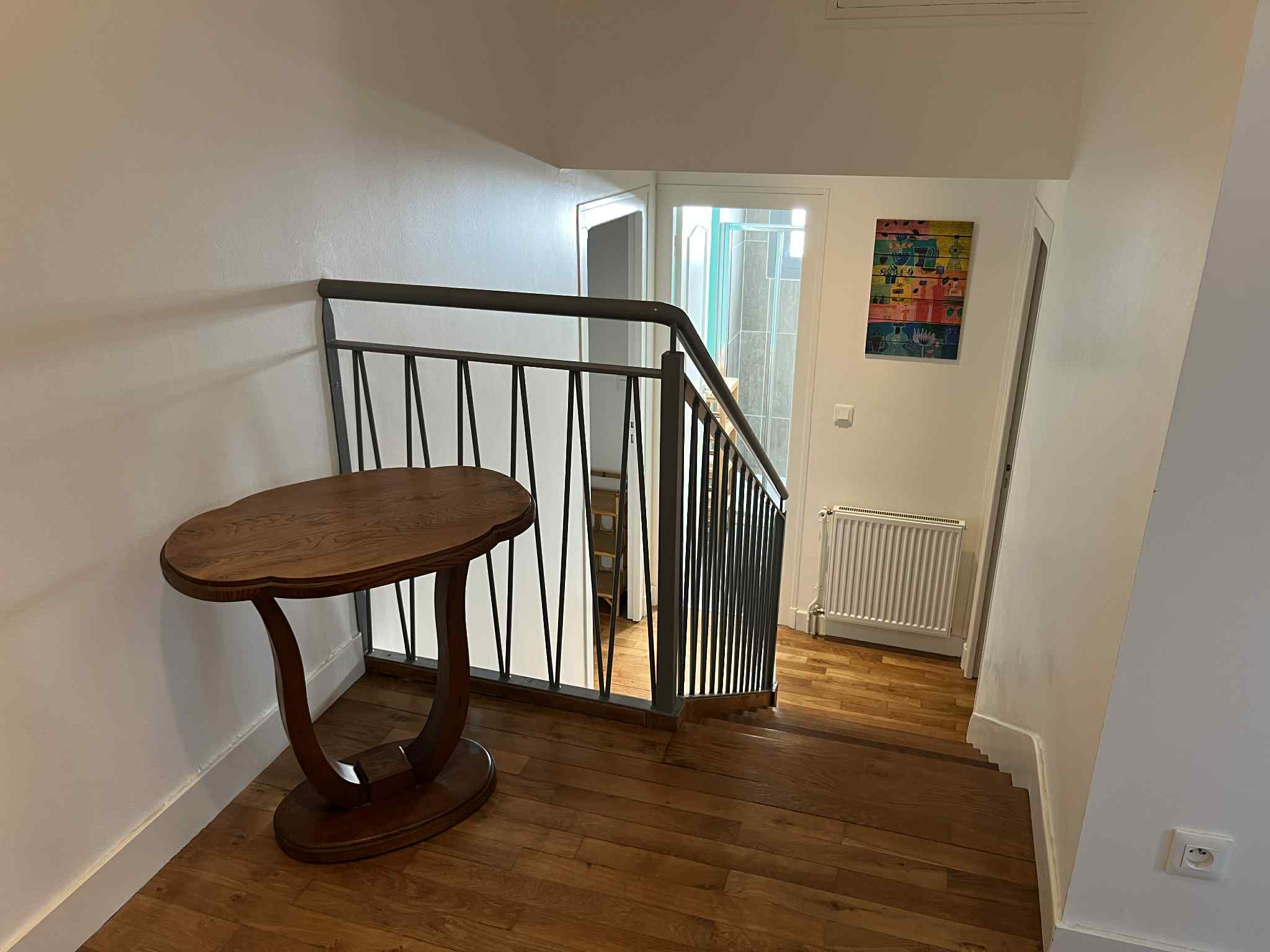 Le deuxième palier (quatre marches) se compose d’une chambre, d’un dressing, d’une salle de bain et d’un wc séparé.