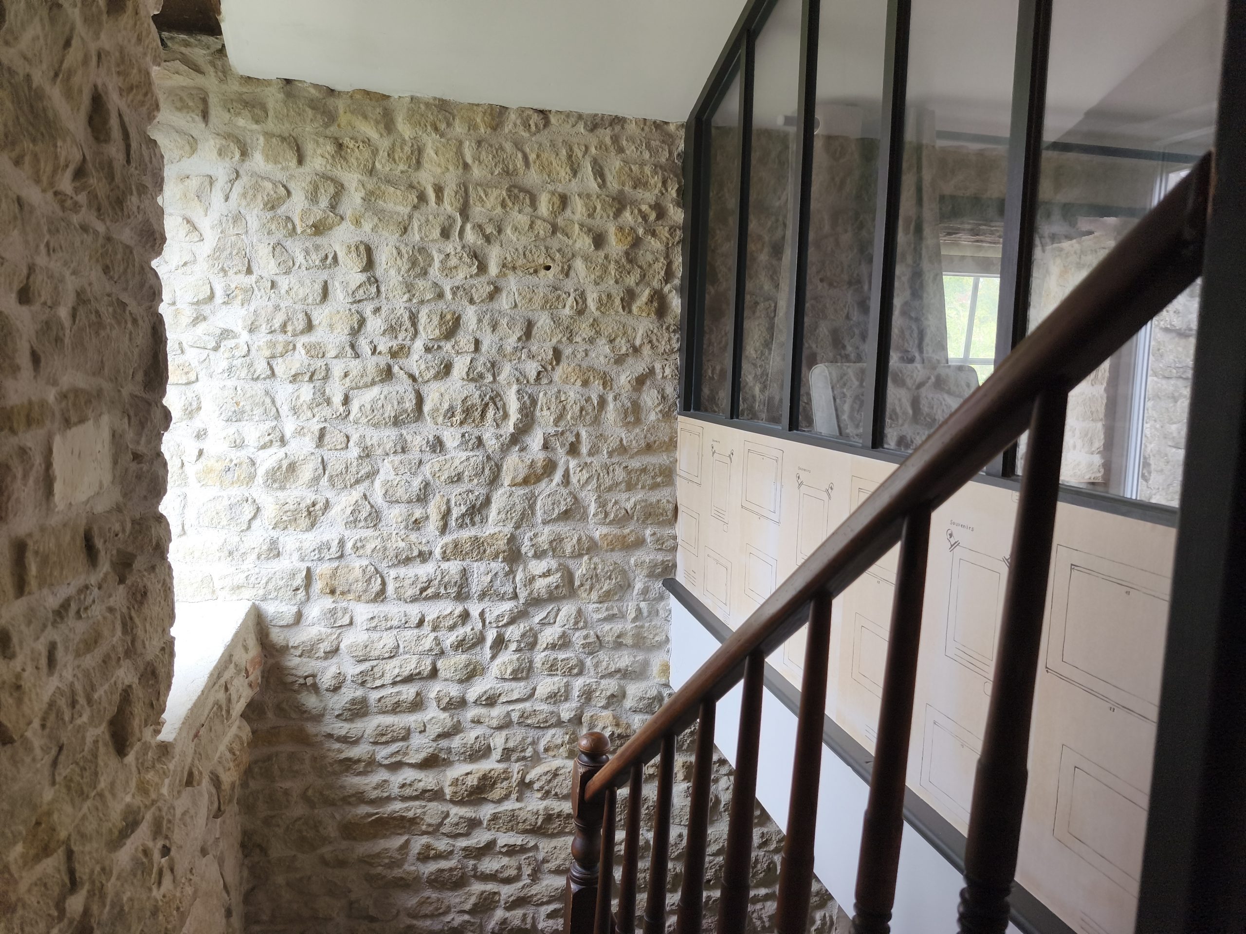 et à l’étage un palier dessert 4 chambres, une salle d’eau à finir, un WC séparé,