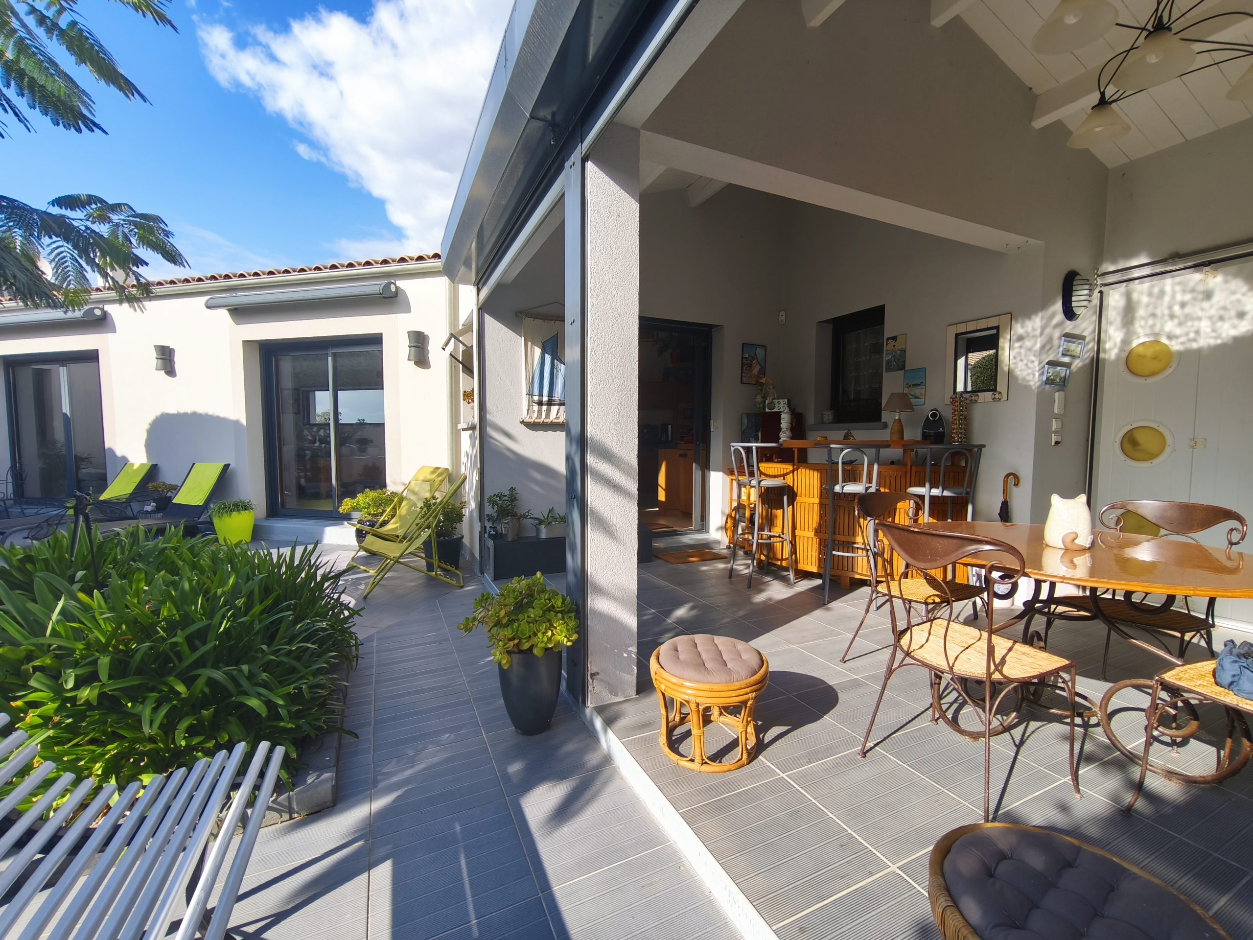 17 IMMO ! PLAIN-PIED ! CHÂTELAILLON-PLAGE !!! Maison T5 de 146m² avec jardin et garage. Ce bien récent (2011) comprend : Un salon/séjour lumineux donnant une terrasse avec vue dégagée. La cuisine ouverte est entièrement équipée et dispose d’une arrière cuisine volumineuse. De plus vous profiterez d’une cuisine d’été avec accès au grand patio, un endroit idéal pour partager des moments en famille ou entre amis. La partie nuit dispose d’une suite parentale avec salle d’eau, WC et dressing. Deux autre chambres, une salle d’eau, un débarras et un WC séparé viennent compléter cette maison confortable.