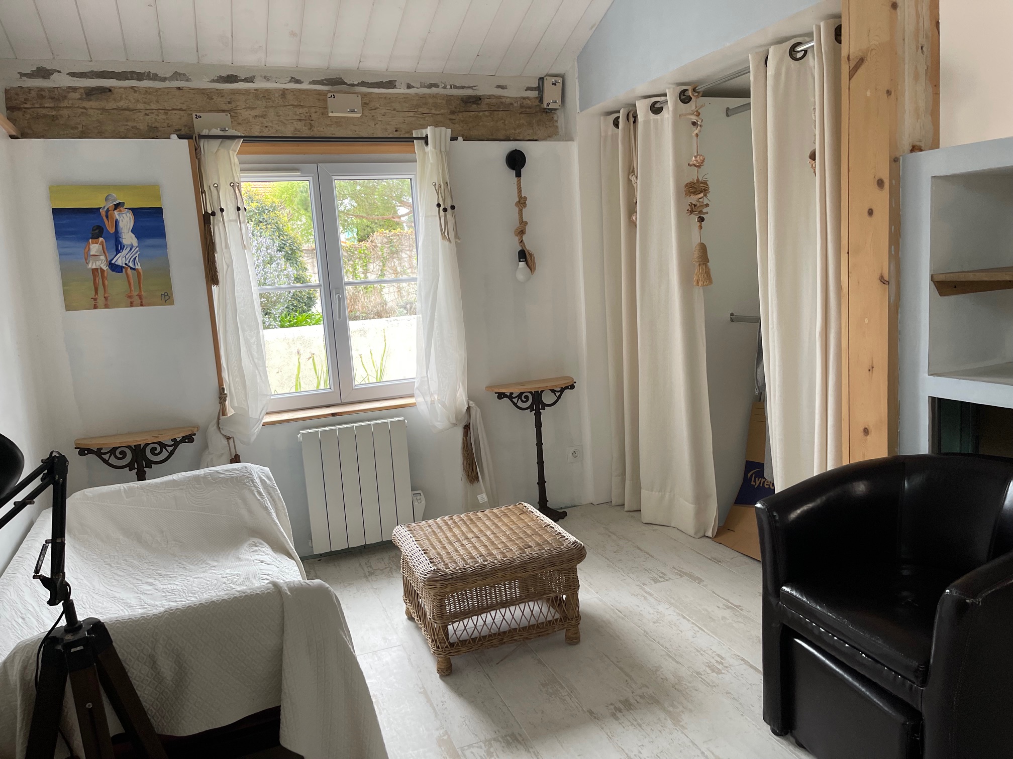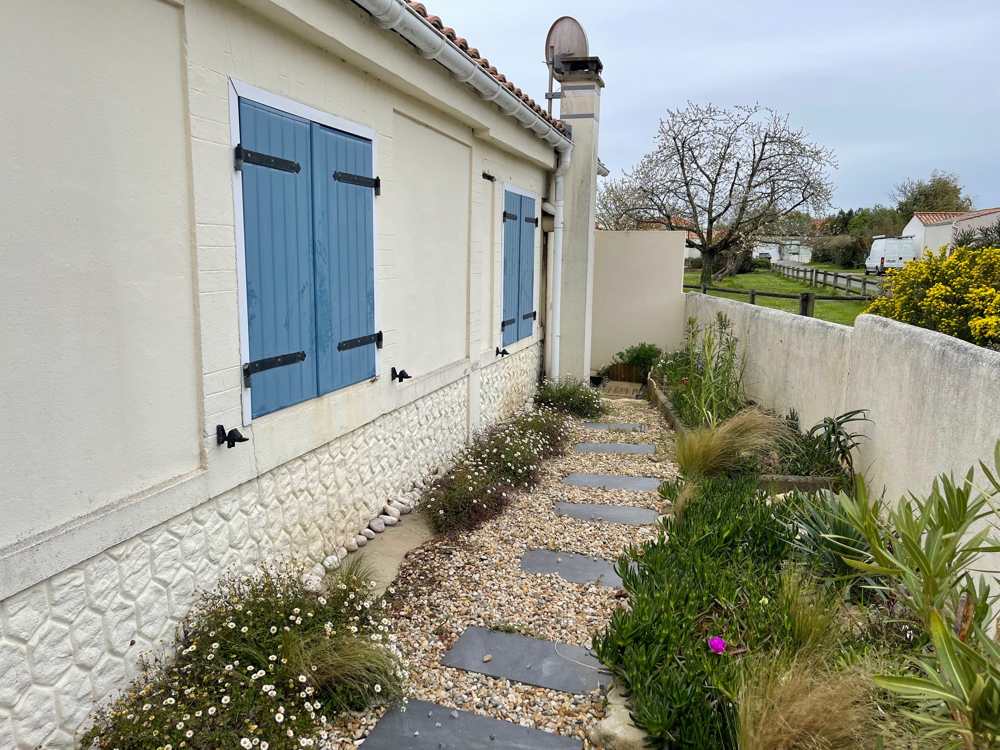 Elle se situe à 12 minutes à pied de la rue du Marché, 15 minutes de la plage. Il n’y a aucun problème de stationnement dans la rue.
