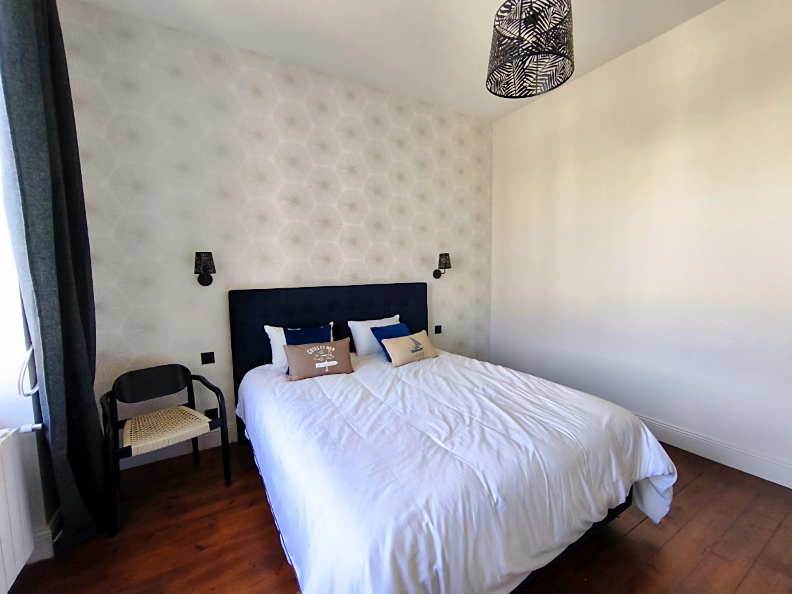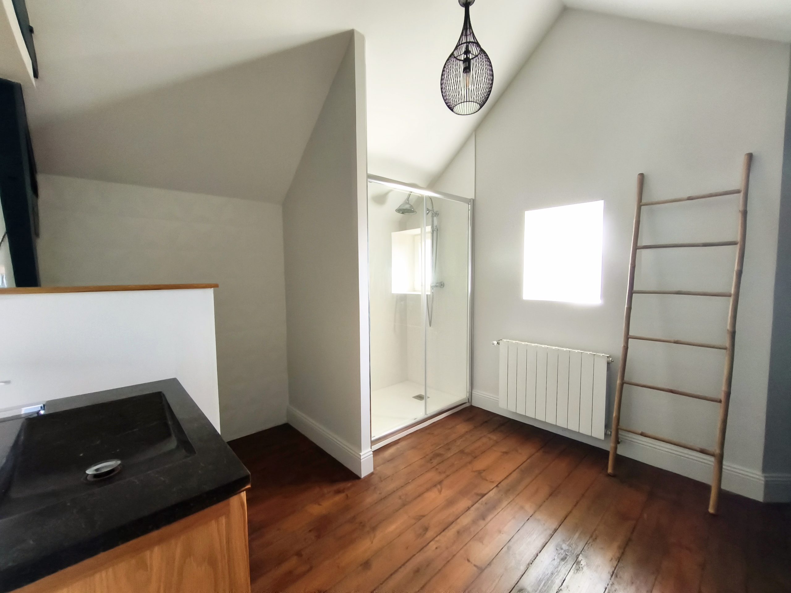 Sous les combles, le deuxième étage propose deux chambres supplémentaires et une salle d’eau.